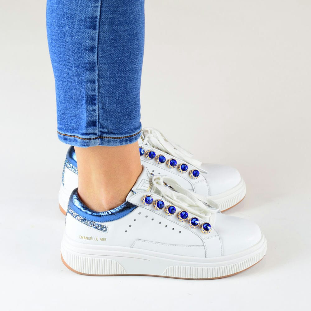 Sneakers δερμάτινα λευκά με μπλε πέτρες